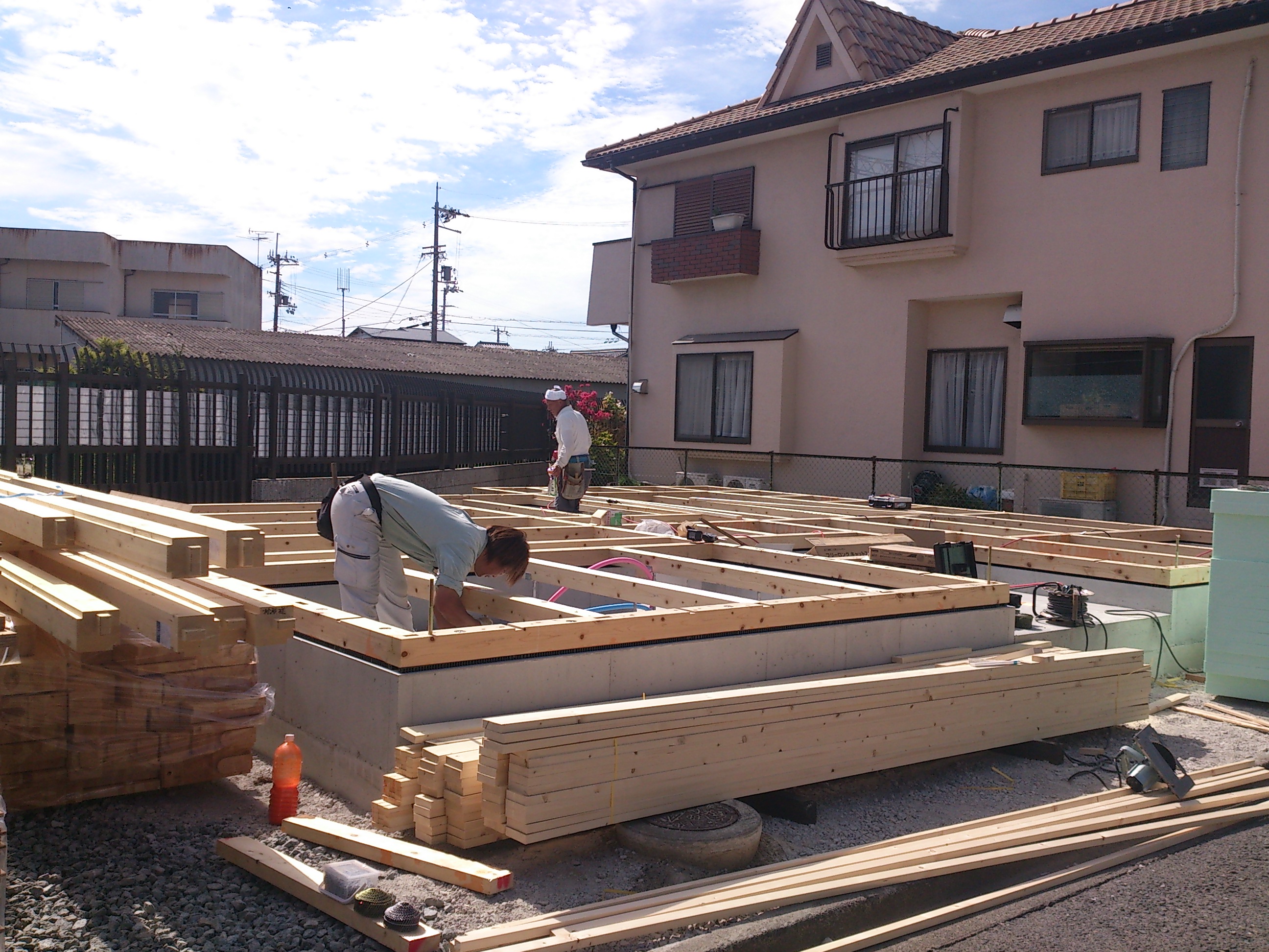 土台敷きが始まっています!
